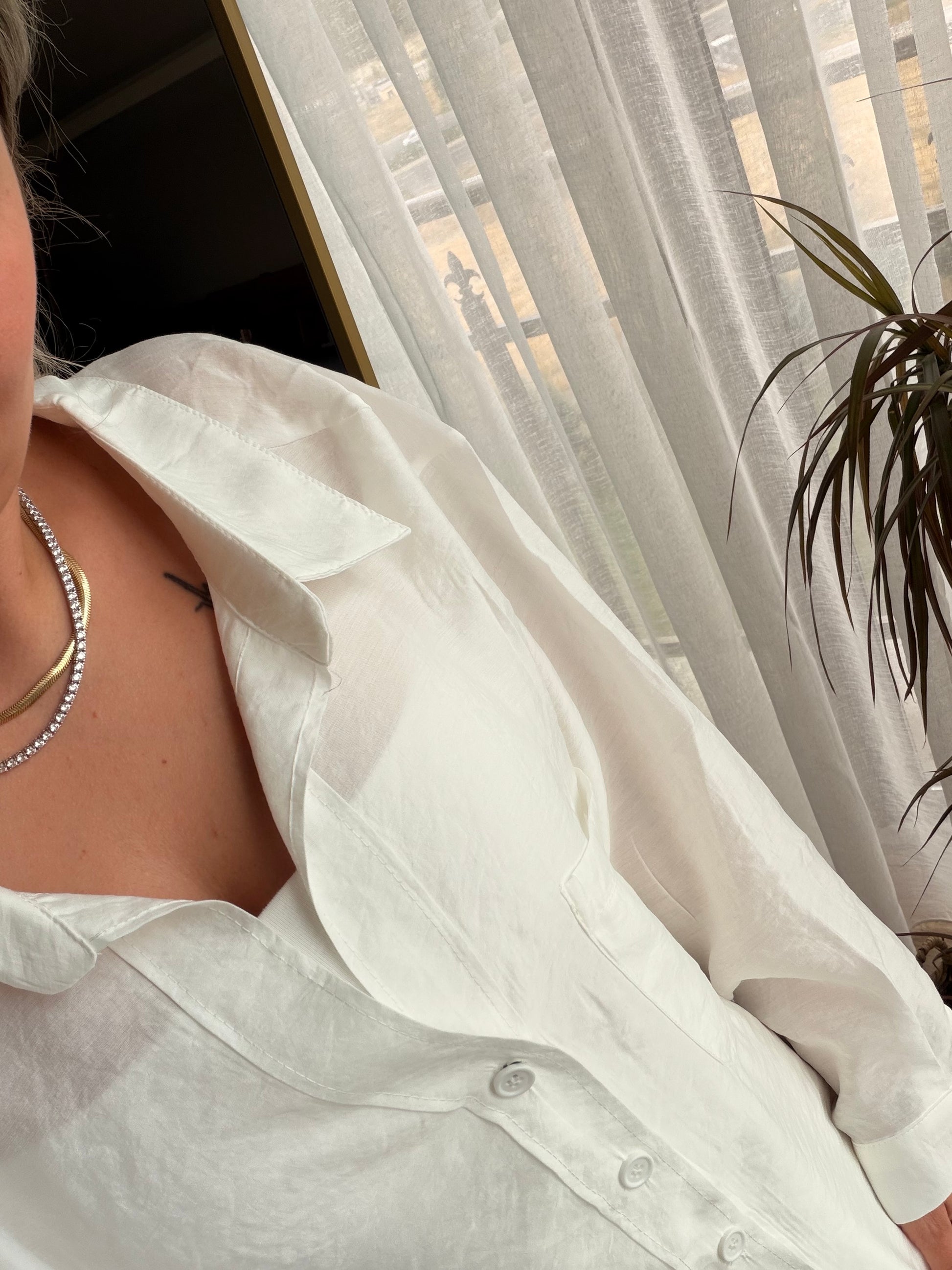 BEYAZ OVERSİZE TENSEL GÖMLEK