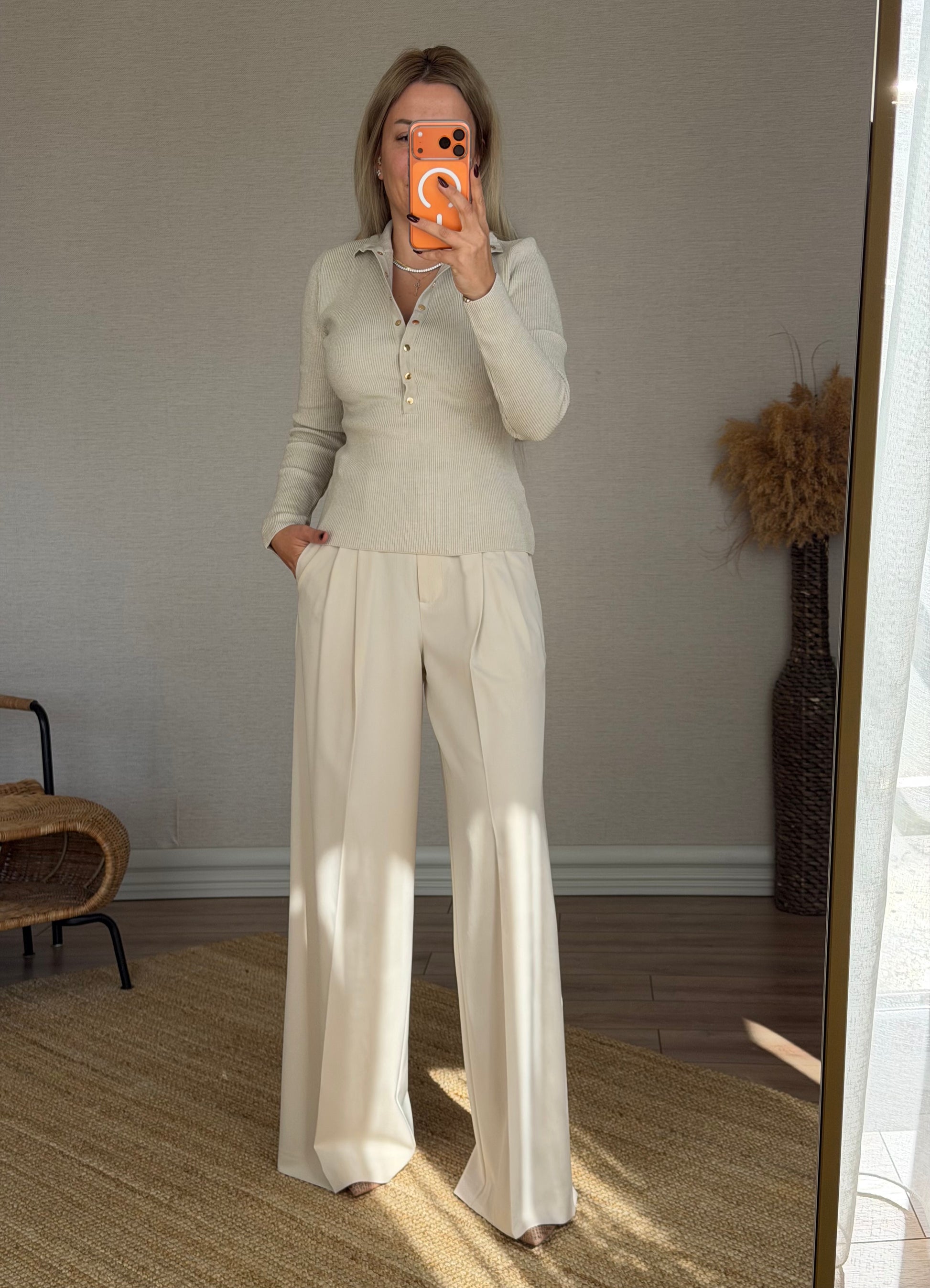 DİLVİN BELİ AYARLANABİLİR TAŞ RENGİ PALAZZO