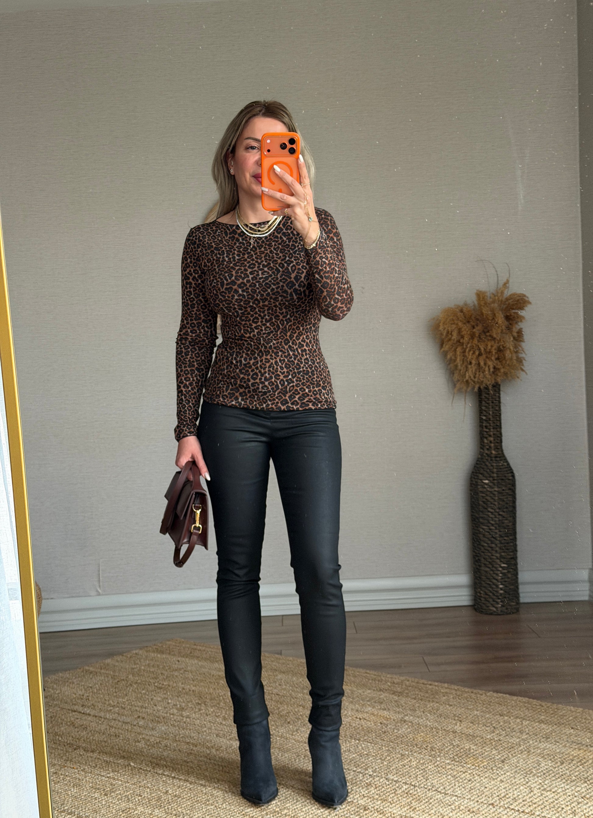 DİLVİN LEOPAR KAŞMİR BLUZ