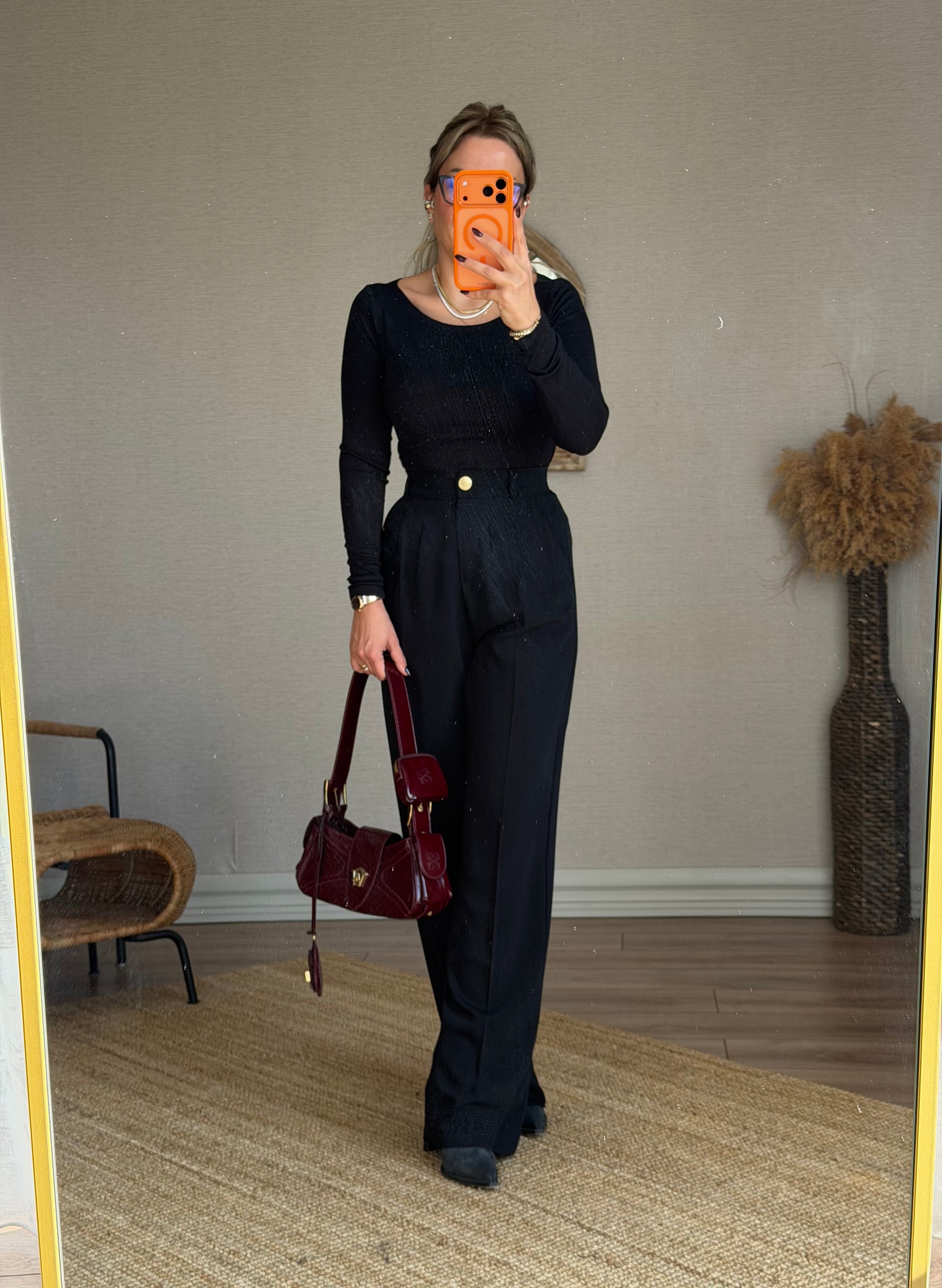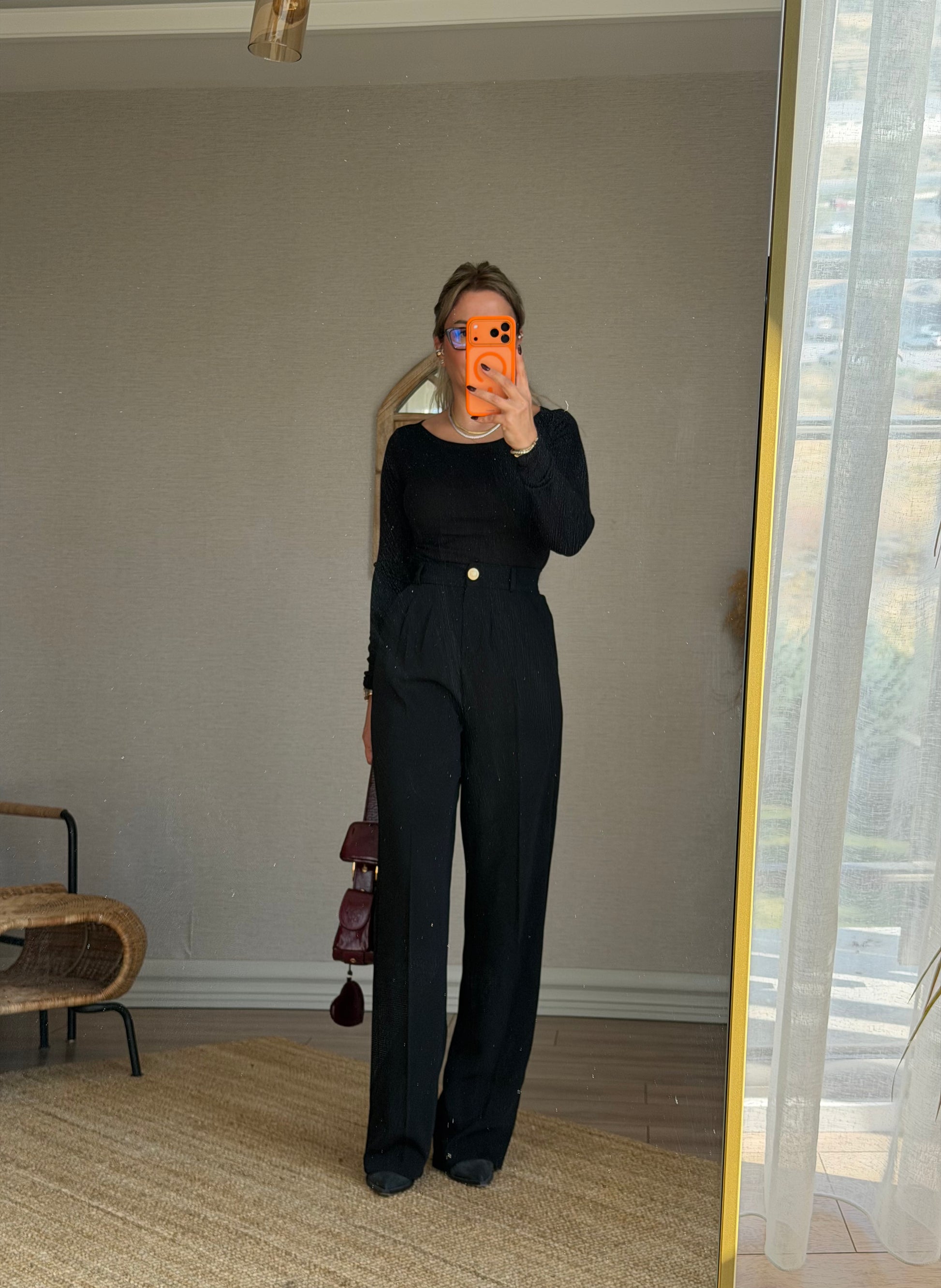 DİLVİN SİYAH KAYIK YAKA BLUZ