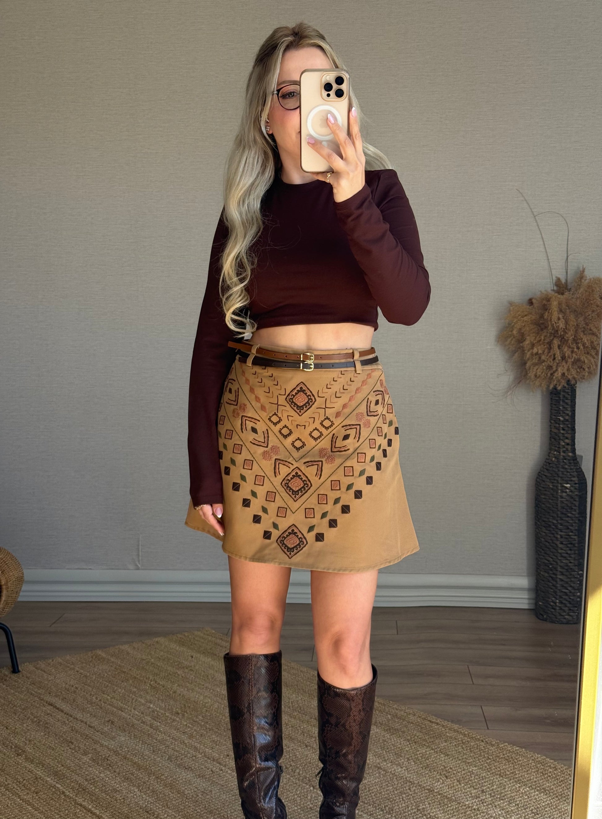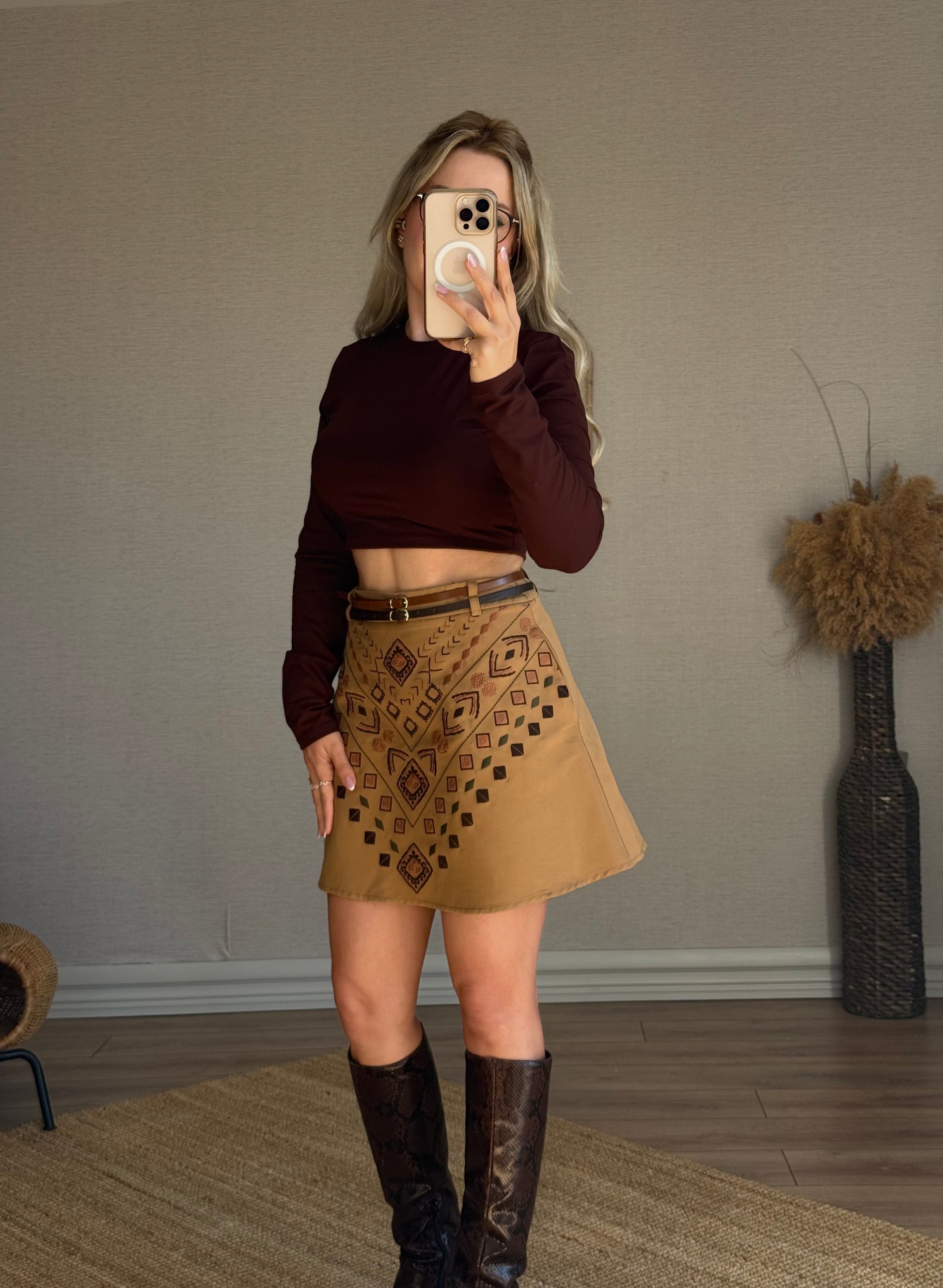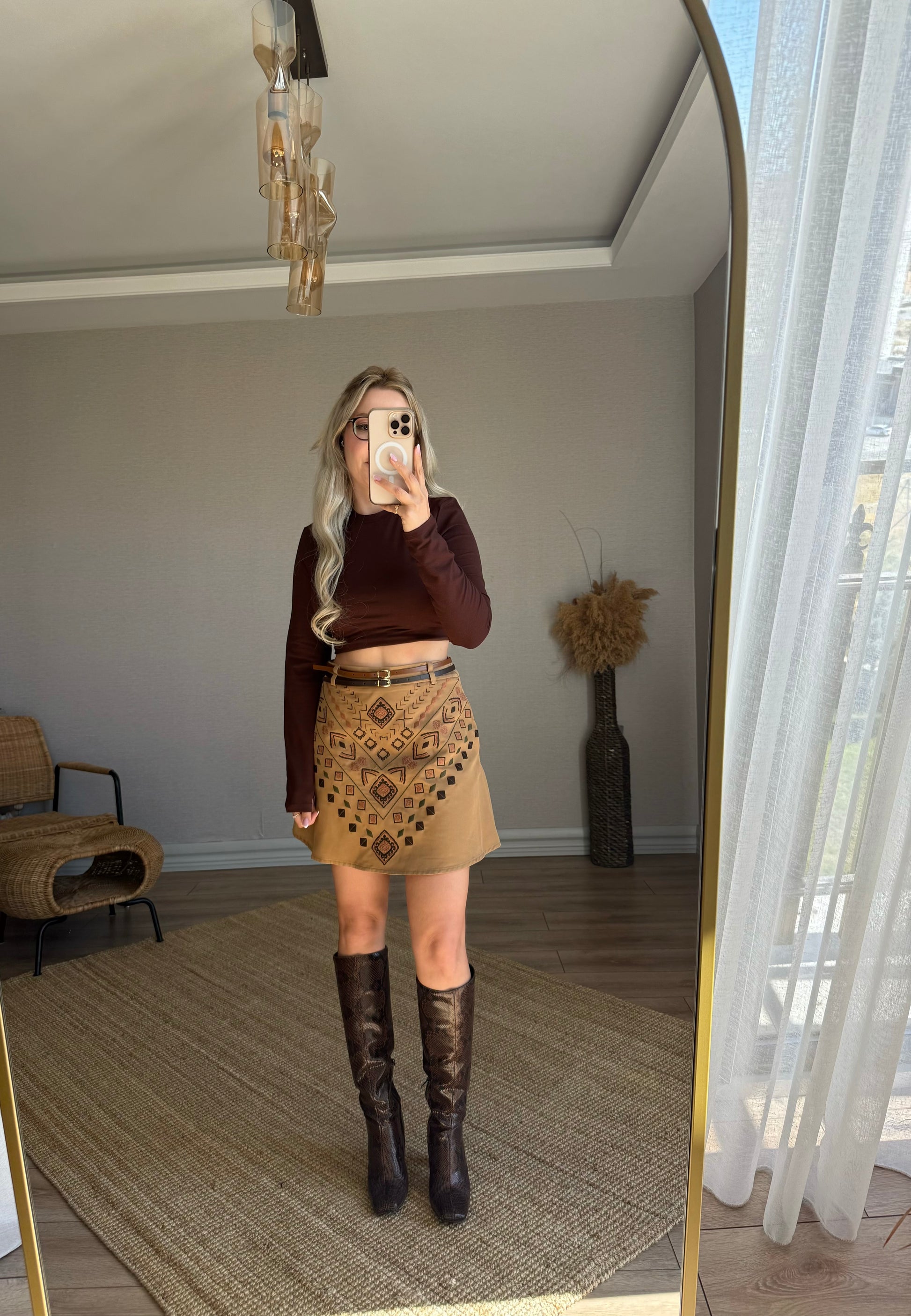 NAKIŞ DETAYLI ÇİFTKEMERLİ ETEK