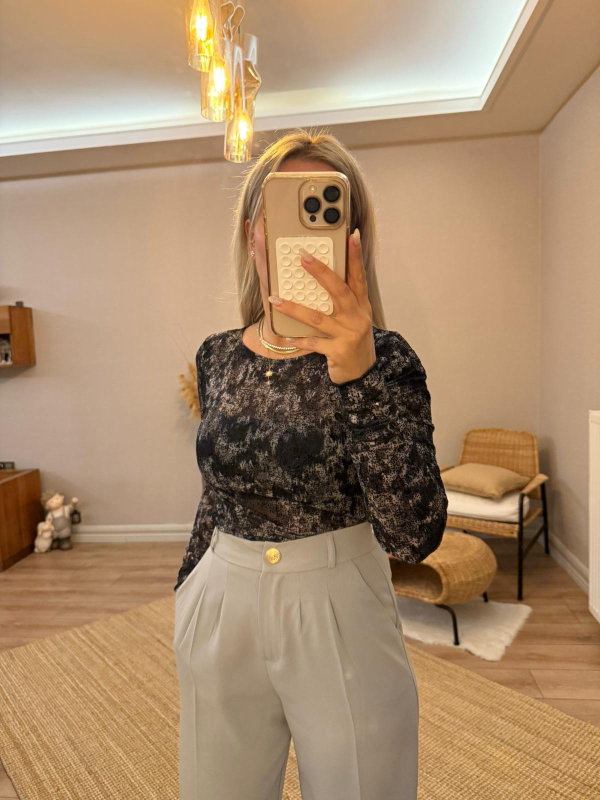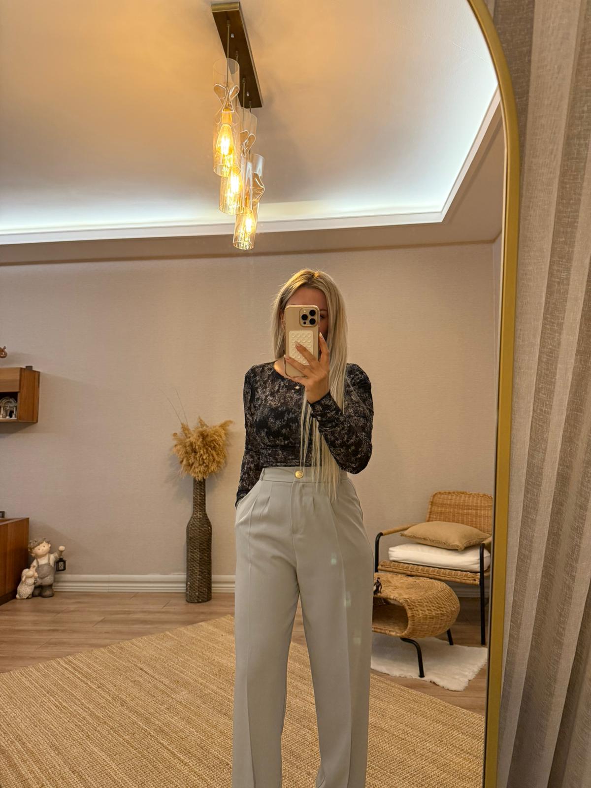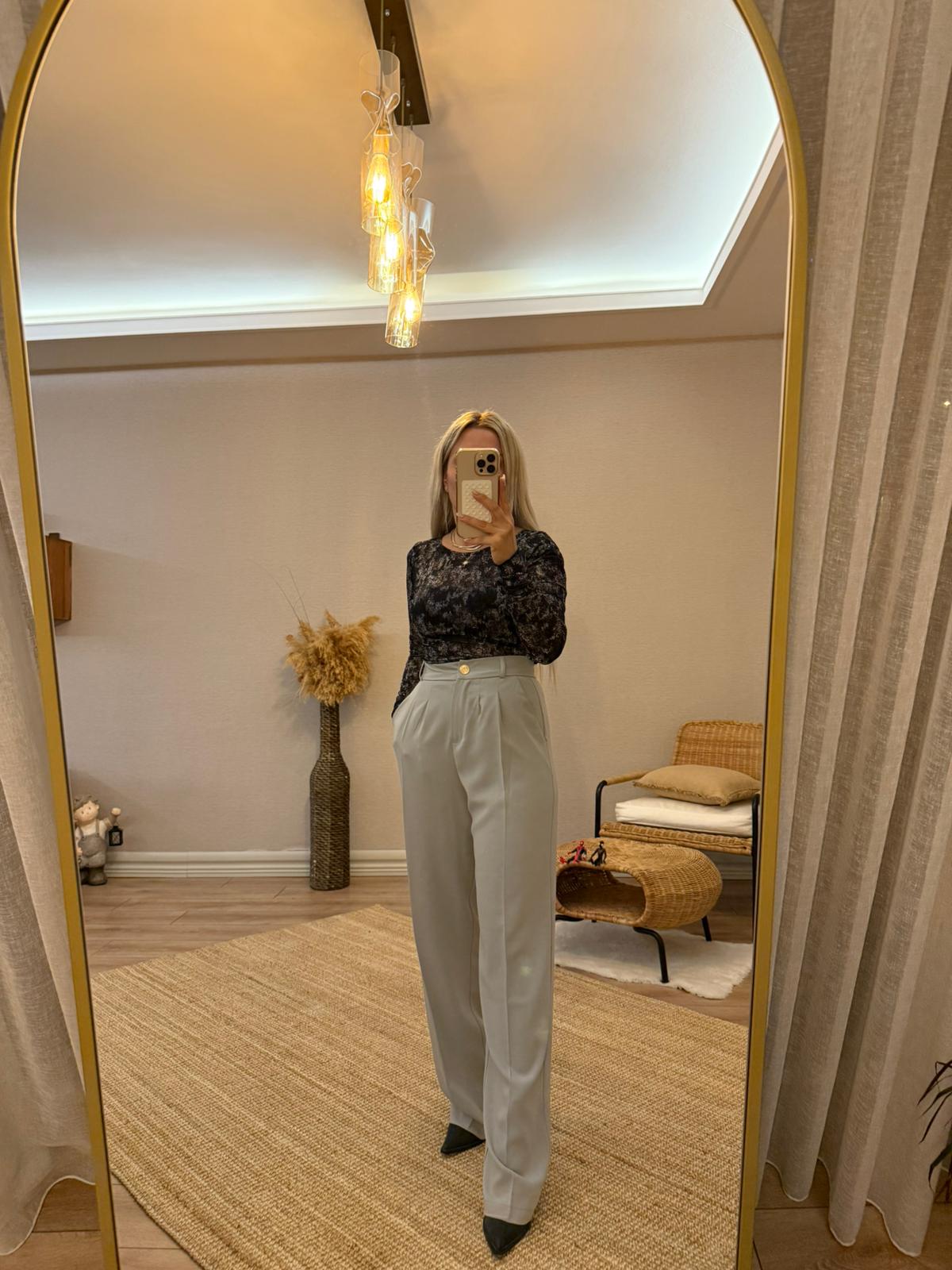 PİLELİ PALAZZO PANTOLON GOLD DÜĞME DETAYLI