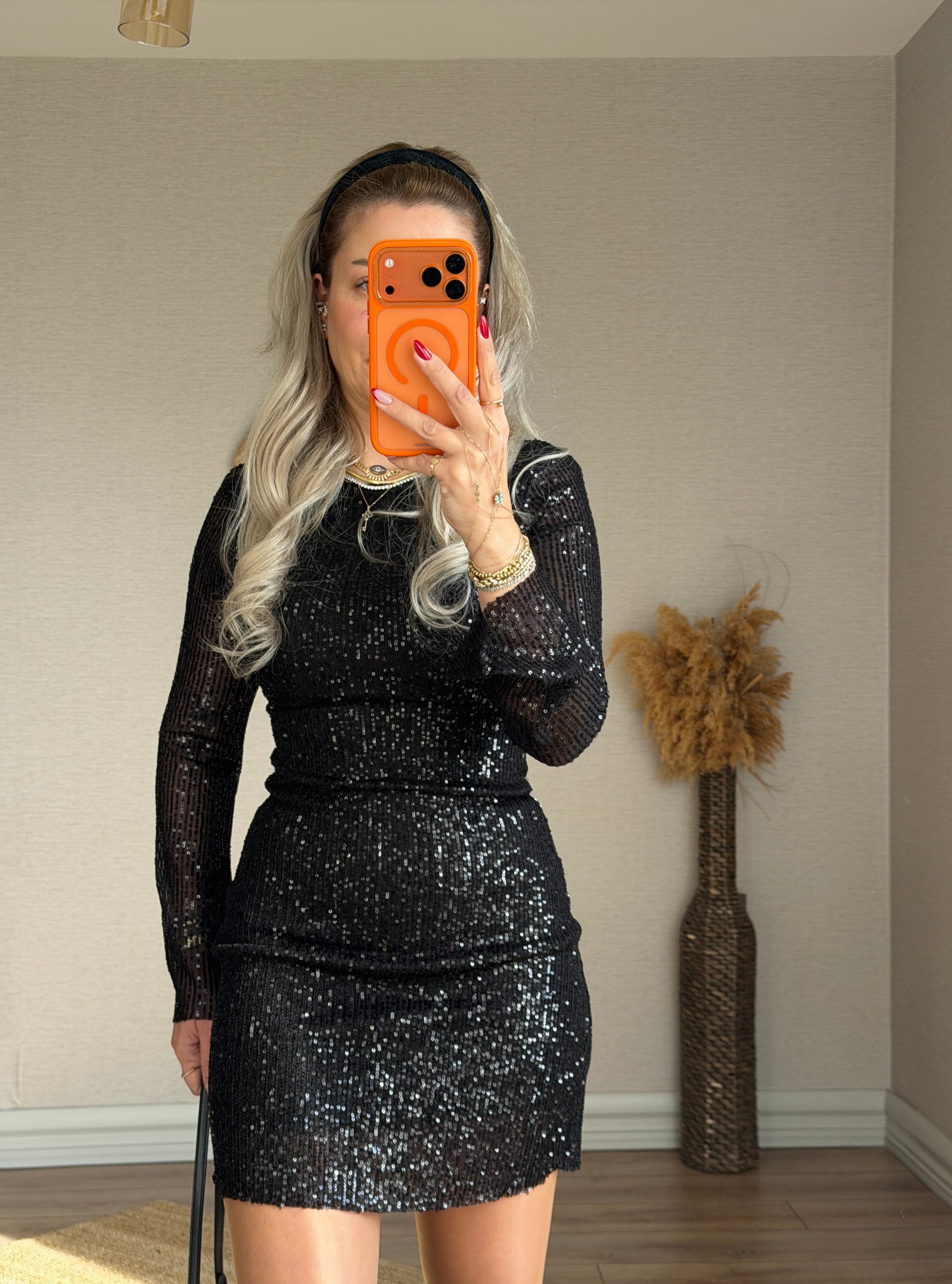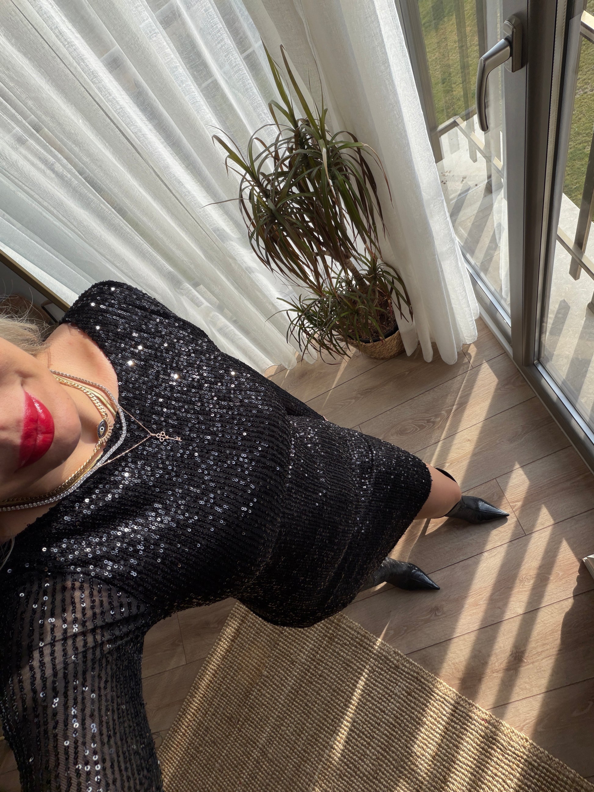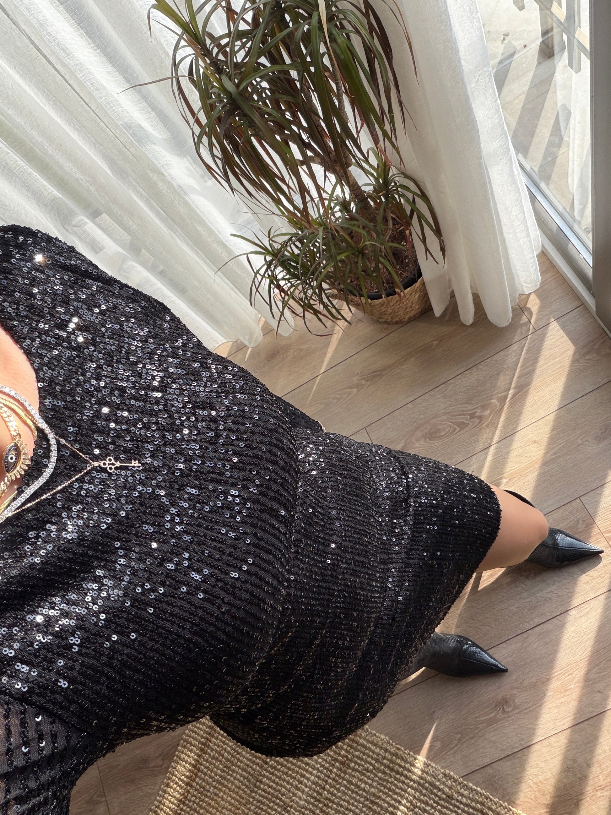 SİYAH PULLU ELBİSE