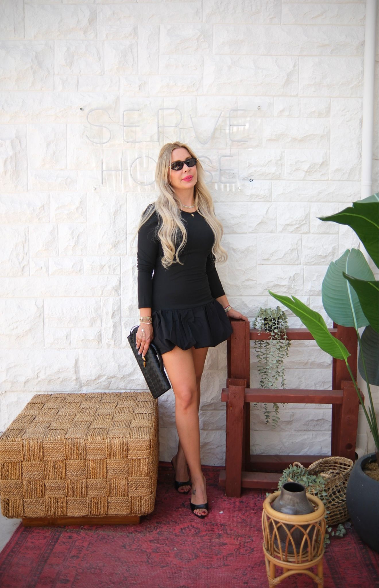 SİYAH BALON ETEK DETAYLI ELBİSE